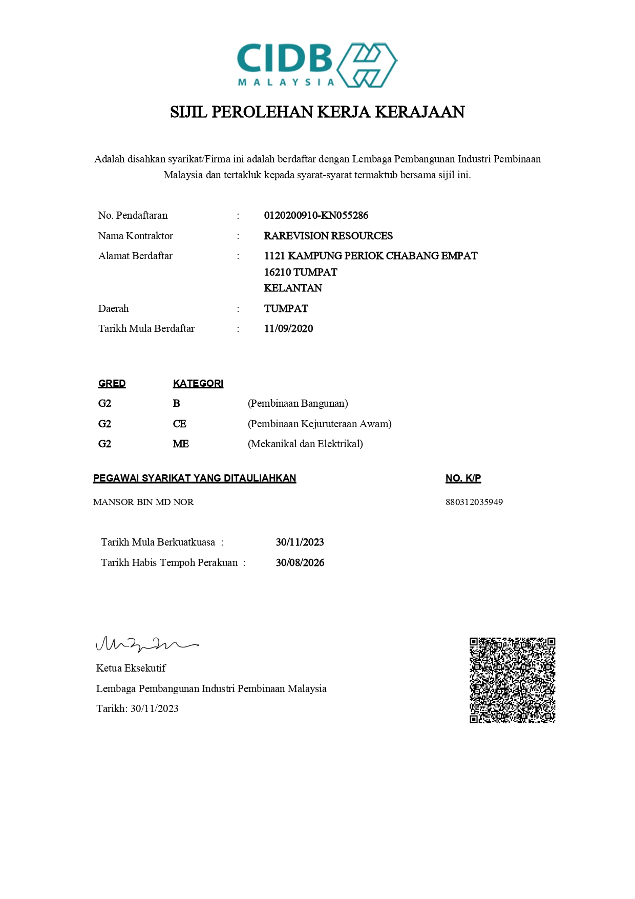 At Rarevision Resources, we strongly believe in delivering superior quality products and upholding the quality of our workmanship. Our commitment has helped us in earning the CIDB accreditation. At the same time, a large percentage of our projects over the last 5 5 years have achieved high scores of 80% and above in CIDB assessments, a testiment to our dedication in our work.